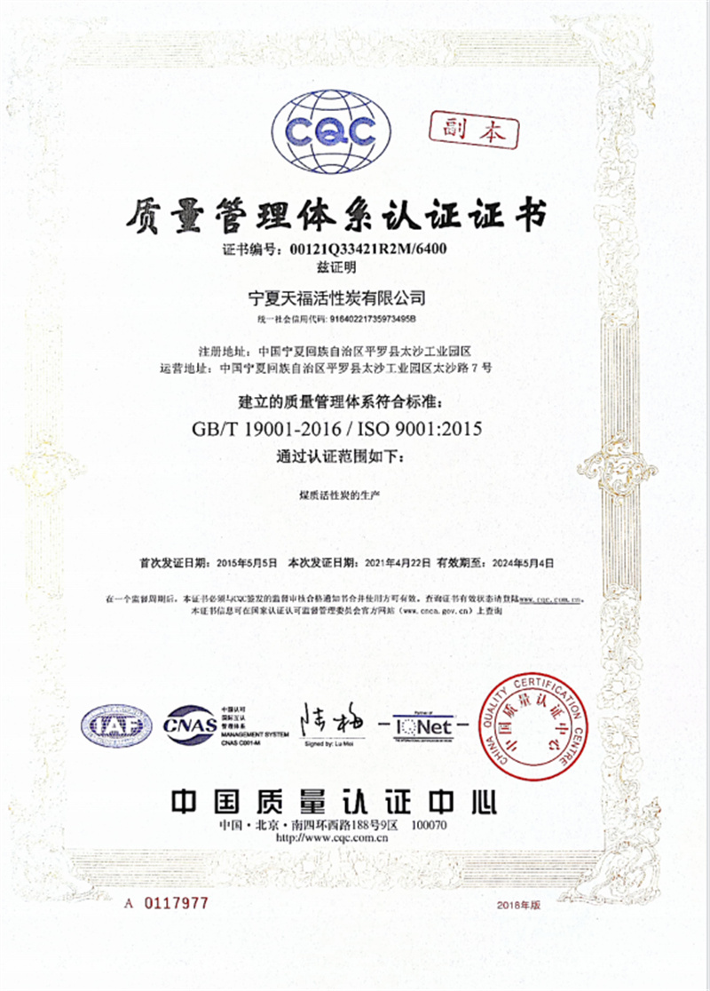 宁夏天福活性炭有限公司成立于2003年。2003年6月23日正式在宁夏平罗县工商局注册。并于当年在平罗县太沙工业园区建活性炭生产厂。工厂总占地面积29356平方米。