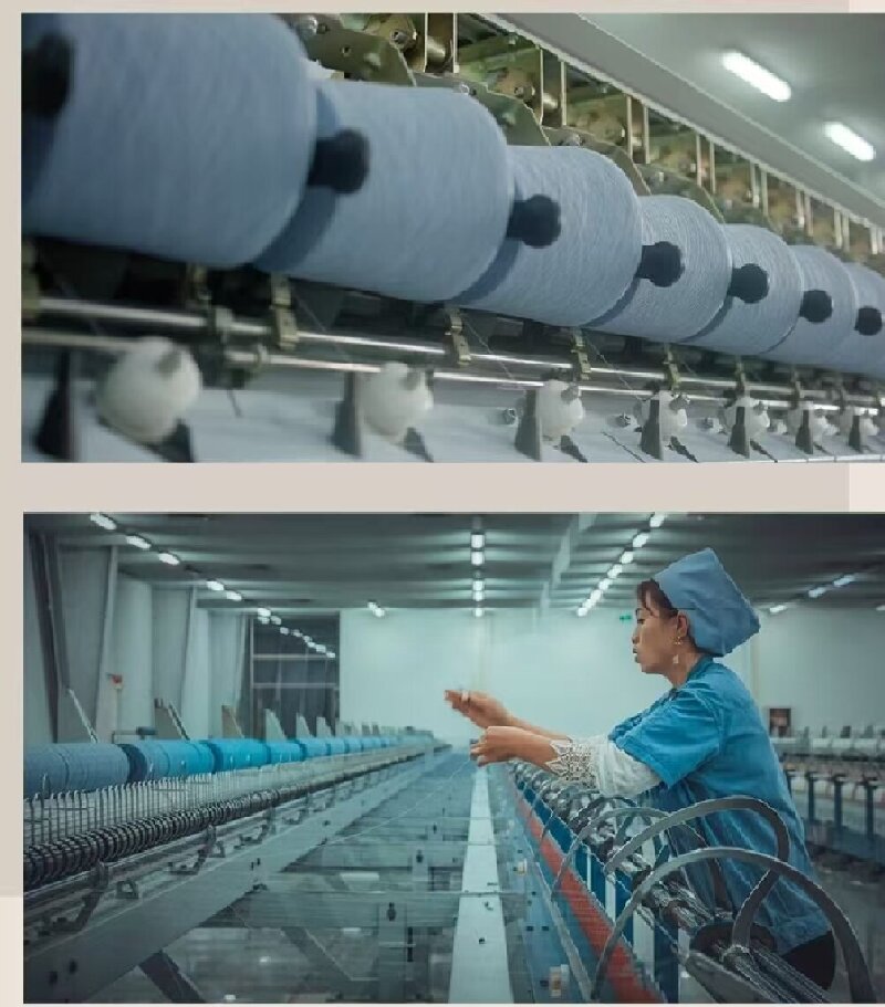 新澳羊绒的工厂引进国内外先进纺纱设备,有意大利OMMI公司的和毛机、意大利OCTIR公司的梳毛机、意大利GAUDINO公司的细纱机、日本MURATEC的络筒机、并线机和捻线机及先进的检测设备,可生产18-42Nm的纯羊绒纱线以及混纺纱线,年生产能力达到2500吨。